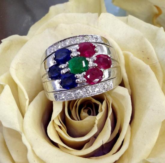 Anello a fascia con diamanti e rubini