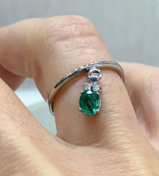 Anello fedina con ciondolo con smeraldo o zaffiro a scelta