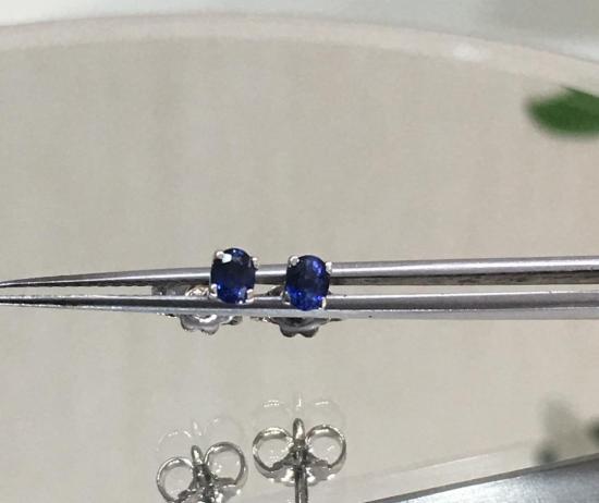 Paio di orecchini in oro bianco 18kt con zaffiri blu veri naturali taglio ovale sfaccettato. Perno e farfallina.