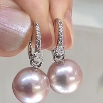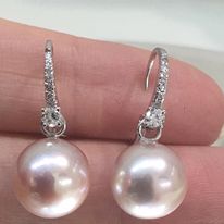 Perle perfettamente sferiche mm 11 vere coltivate in acqua dolce di colore rosa (bellissimo) con monachella in oro bianco 18kt con diamanti veri naturali ct. 0.15.