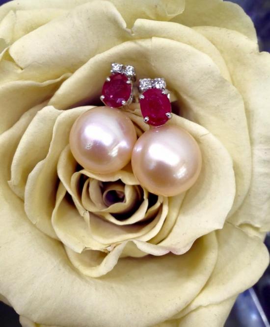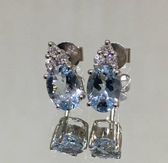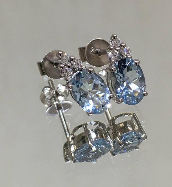 Orecchini in oro bianco 18kt con diamanti veri naturali taglio rotondo a brillante e acquamarine vere naturali. Perno e farfallina.