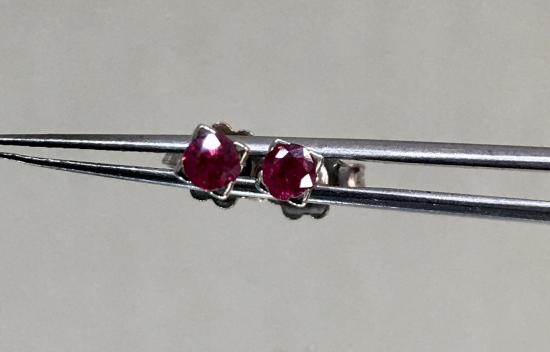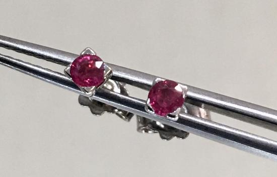 Orecchini in oro bianco 18kt con diamanti, perle vere naturali mm 7,5-8 e rubini veri naturali. Perno e farfallina.